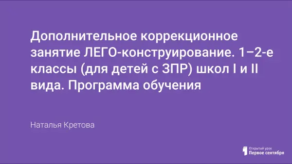 Дополнительное коррекционное занятие ЛЕГО-конструирование. 1–2-е классы (для детей с ЗПР) школ I и II вида. Программа обучения