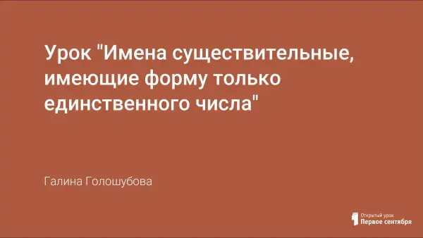 Урок посвящен изучению имен существительных, имеющих форму только единственного числа. Дети учатся употреблять такие имена существительные в сочетании с именами прилагательными и глаголами прошедшего времени.