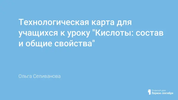 Технологическая карта для учащихся к уроку "Кислоты: состав и общие свойства"