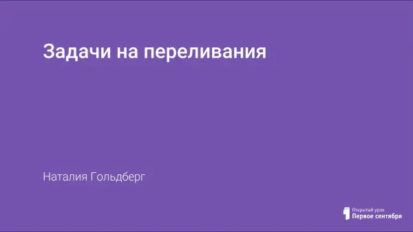 Задачи на переливания – одна из традиционных тем, которые предлагаются учащимся на различных математических конкурсах и олимпиадах. Они доступны большому кругу детей, вызывают неизменный интерес и вызывает стремление детей к более глубокому изучению математики.