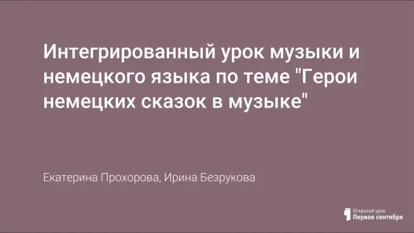 Урок позволяет создать положительную мотивацию к изучению музыки и немецкого языка. Через рабочую наглядность и презентацию раскрывается тема урока в увлекательной и доступной форме. Цель урока – обобщить знания по темам "Сказочные образы в музыке. Язык музыки" и "Описание людей и животных". Урок способствует формированию эстетического и нравственного воспитания, помогает выяснить, какую роль играет сказка в жизни человека.