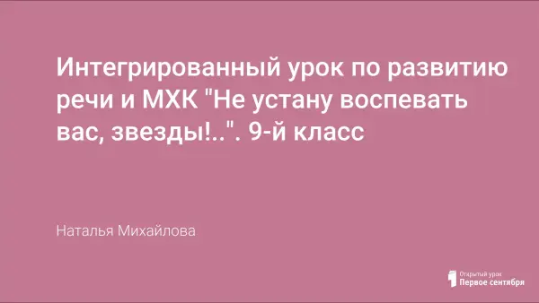 Особое место в процессе формирования коммуникативных умений должно отводиться упражнениям по развитию связной устной и письменной речи. Использование определенных мыслительных операций (анализа, синтеза, сравнения и др.) помогает ученикам прийти к главной цели – создать свое произведение о звездах. Рефлексия отражает уровень развития языковой личности. На уроке используются замечательные стихи И.Бунина, А.Межирова, а также произведения живописи, тесно связанные с темой урока.