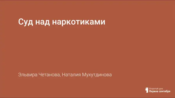 Внеклассное мероприятие "Суд над наркотиками" представляет собой ролевую игру, построенную с максимальным соответствием процедуре проведения судебного заседания, в ходе которого сторона обвинения представляет серьезную доказательную базу вины наркотиков с информационной поддержкой сайтов Федеральной службы РФ по контролю за оборотом наркотиков и Управления Федеральной службы РТ по контролю за оборотом наркотиков.