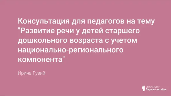 Консультация для педагогов на тему "Развитие речи у детей старшего дошкольного возраста с учетом национально-регионального компонента"
