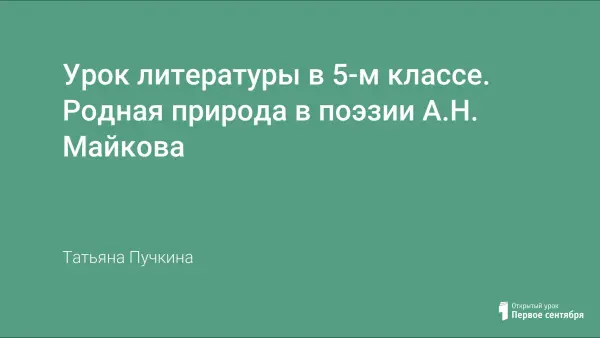 Урок литературы в 5-м классе знакомит учащихся с творчеством русского поэта Аполлона Николаевича Майкова. На примере его произведений школьники учатся анализировать стихи; продолжают учиться выразительному чтению стихов. Через поэтический мир автора идет воспитание у них душевной чуткости, доброты, умения видеть красоту вокруг себя и умения беречь ее.