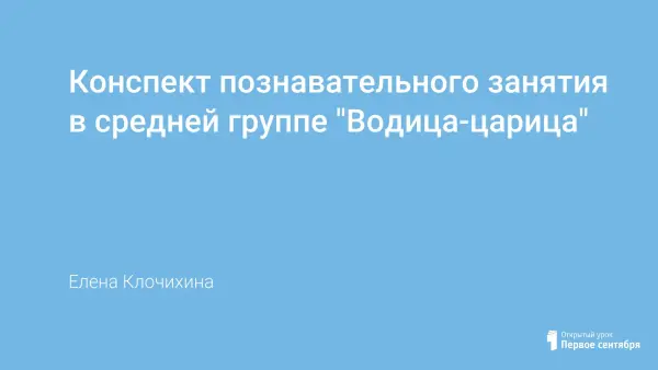 Конспект познавательного занятия составлен на основе сказочного сюжета, который органично включает в содержание серию опытов и экспериментов, позволяющих практическим путем познакомить детей с некоторыми свойствами воды.