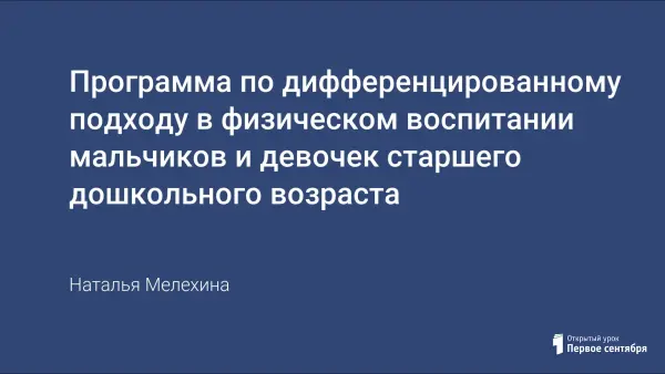 В программе обосновано значение, содержание и годовой план работы по дифференцированному подходу в физическом воспитании мальчиков и девочек. Даны разнообразные варианты проведения физкультурных занятий и показатели физической подготовленности детей 6–7 лет.