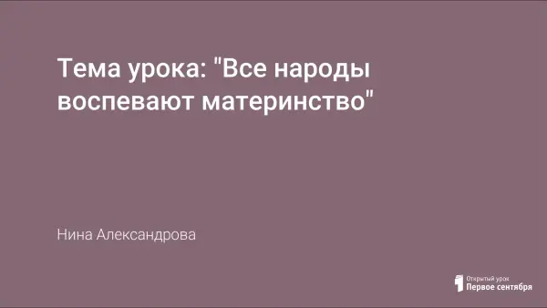 Цели урока: дать представление о едином образе матери в искусстве разных народов; передать в рисунке настроение, эмоциональное содержание взаимоотношения матери и ребенка; развивать навыки рисования по представлению.
