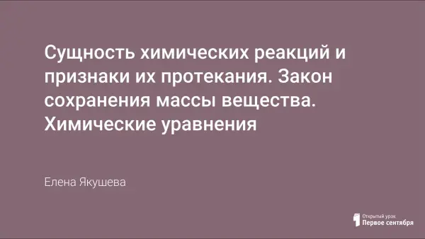Цели урока: обобщение и развитие знаний учащихся о сущности и признаках протекания химических реакций; формирование представлений школьников об изменении энергии веществ как об основном признаке протекания реакций и о классификации химических реакций, составленной на основе этого признака.