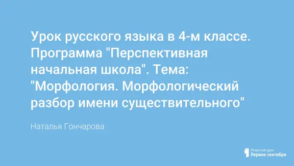 Урок русского языка в 4-м классе. Программа "Перспективная начальная школа". Тема: "Морфология. Морфологический разбор имени существительного"