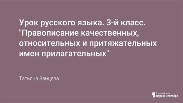 Урок русского языка. 3-й класс. "Правописание качественных, относительных и притяжательных имен прилагательных"