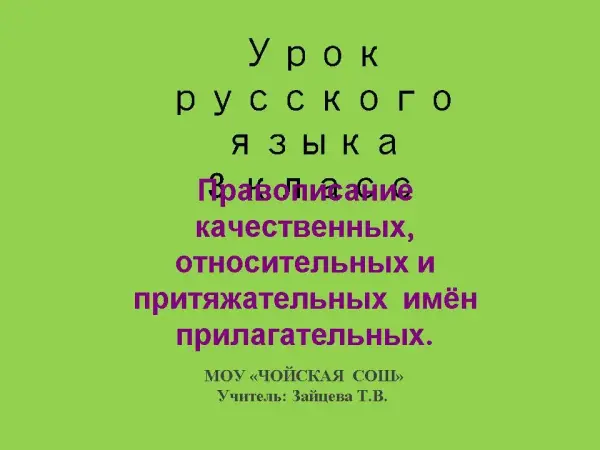 Урок в 3-м классе призван повторить и обобщить знания учащихся об имени прилагательном как части речи; развивать умения подбирать и распознавать имена прилагательные (качественные, относительные и притяжательные), развивать умения наблюдать, сравнивать, делать выводы; воспитывать любовь к природе, родному краю.
