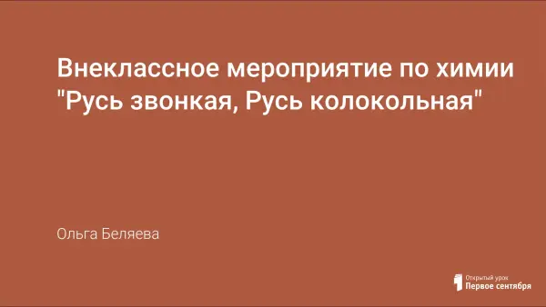 Сценарий химического вечера, в ходе которого школьники знакомятся со способами получения металлов на примере меди, со сплавами меди, изделиями из бронзы, многое узнают о секретах колокольной бронзы, проделывают демонстрационные опыты. Мероприятие имеет целью расширить и углубить знания своих учеников за рамками школьных уроков. На этом вечере учащиеся учатся творчески мыслить, использовать полученные знания в жизни, получают весьма важный опыт делового общения.