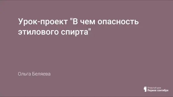 Интегрированный урок биологии и химии с ИКТ. Цель урока: обобщение знаний учащихся о свойствах спиртов и их влиянии на организм человека, провести исследования для выявления причин токсичности этилового спирта; расширить знания учащихся по теме «Спирты», ядовитых свойствах этанола и отрицательном воздействии на организм человека.
