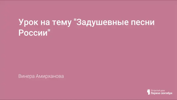 Урок знакомит обучающихся с задушевными песнями и великими певцами России и Башкортостана. Для урока отобраны песни, в которых присутствуют красивые образы. Эти песни о красоте природы, о Родине.