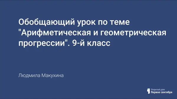 На уроке алгебры обобщаются и закрепляются знания учащихся по теме «Арифметическая и геометрическая прогрессия». При решении упражнений используется теоретический материал; учащиеся знакомятся с историческим материалом по теме урока; разбирают типичные задания, встречающиеся в сборниках для подготовки к ГИА.