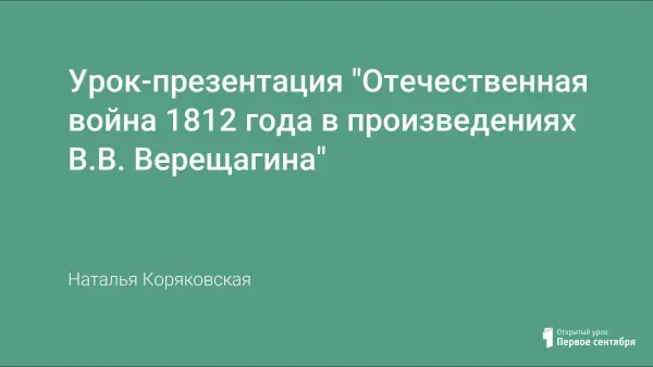Урок изучает творчество Василия Васильевича Верещагина, привязан к 200-летию Бородинского сражения.