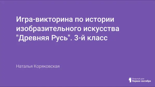Викторины по предмету истории изобразительного искусства нравятся детям и позволяют сделать урок более интересным. Автор часто проводит на уроках различные викторины, игры и представляет одну из таких игр-викторин на тему «Древняя Русь».