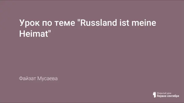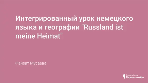 Представленный урок немецкого языка интегрирован с географии России. Ученики знакомятся с характеристиками границ нашей родины, с ее реками и озерами; закрепляют НЛЕ: die Heimat, anfangen, das Staatwappen, mannigfaltig, die Wiese, das Tal, Bilder, das Klima, der Süßwassersee, die Wüste, um uns herum, die Gegend, die Polarnacht, das Festland, stolz sein auf (Akk); обучение устной речи, повторение притяжательных местоимений, окончаний имен прилагательных.