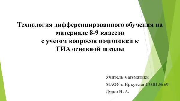 Цель мастер-класса: использование технологии дифференцированного обучения с учетом вопросов подготовки к ГИА основной школы.