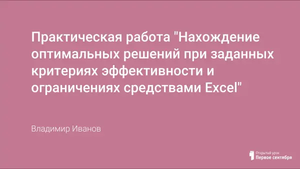 Представлен урок практического обучения, служащий ознакомлению с задачами на оптимизацию, формированию умений поиска решений, выбора оптимальной структуры таблицы в программе MS Excel 2007.