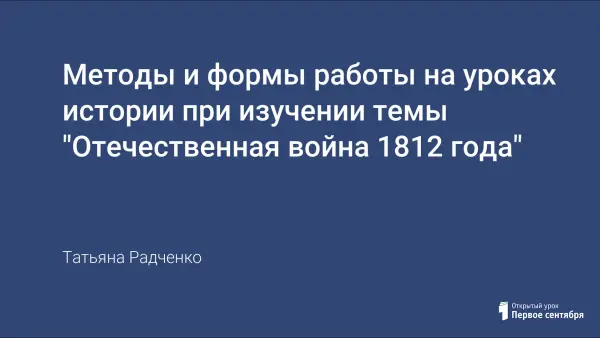 В статье отражены: цель исторического образования, главный элемент исторического образования, структура исторических знаний, главные задачи уроков по теме "Отечественная война 1812 г.". Кроме этого, перечислены задания, которые может использовать учитель на данных уроках.
