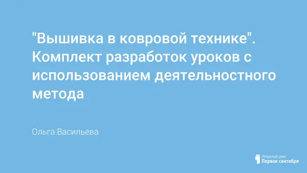 В разработке комплекта уроков учащиеся осваивают новый вид рукоделия. При деятельностном подходе к обучению основной элемент работы учащихся – решение задач, освоение новых видов деятельности. Ученики самостоятельно формулируют проблему, находят ее решение, контролируют правильность этого решения, оценивают результат.