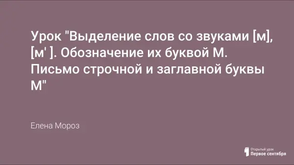 Цели урока: познакомить с согласной буквой М и звуками, которые она обозначает; научить писать строчную и заглавную буквы М, м; повторить ранее изученные буквы; развивать мелкую моторику рук на базе работы с разными материалами, речь, мышление, память, умение читать слоги.