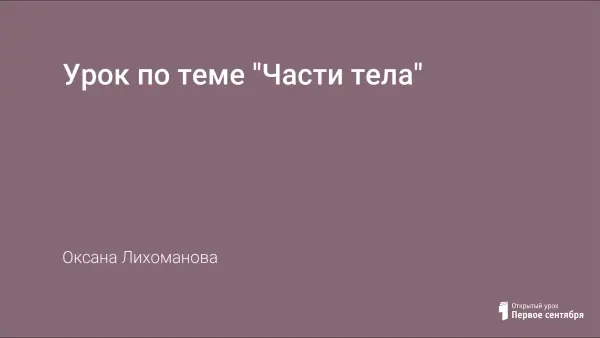 Урок английского языка по теме «Части тела». Цель урока: развивать умения и навыки устной речи – читать наизусть небольшое произведение устного фольклора (стихотворение-разминка); описывать внешность героя сказки; вести диалог-расспрос, используя специальные вопросы; введение новой лексики, слова: mouth, tooth, shoulder, knee, arm, foot, feet, hair.