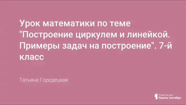 Презентация служит дополнением к уроку, дает наглядное представление о новом классе задач – построении геометрических фигур с циркулем и линейкой без масштабных делений, рассмотреть основные этапы решения задач этого типа и описать этапы построения.
