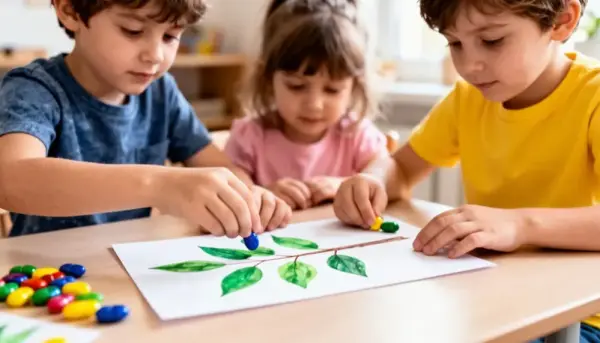 Занятие по рисованию «Весенняя ветка» в средней группе с использованием техник кляксография и пальчиковая живопись