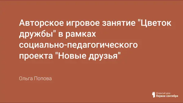 Игровое занятие проводится в рамках социально-педагогического проекта «Новые друзья», в котором принимают участие дети с ограниченными возможностями здоровья МДОУ № 69 и дети областного специализированного дома ребенка. Игровое занятие способствует преодолению определенных барьеров в установлении контактов, конструктивного взаимодействию со сверстниками и взрослыми.