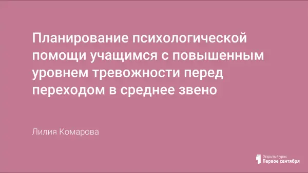 В работе рассматривается необходимость и важность оказания психологической помощи учащимся 4-х классов по снижению тревожности перед переходом в среднее звено. Успешность и эффективность достигается, если работа по снижению тревожности будет проводиться не только с учащимися, но и одновременно с родителями и педагогами.