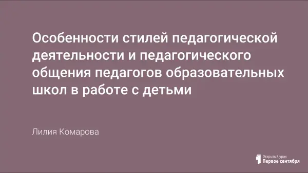 В статье говорится о понимании стиля деятельности в широком смысле слова и понимании индивидуального стиля деятельности в узком смысле слова; рассказывается о родстве между стилем педагогического общения и стилем деятельности; о стилях педагогического общения: авторитарном, демократическом и либеральном.