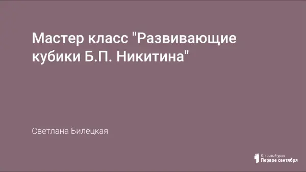 Цель: познакомить участников мастер-класса с практикой использования развивающих игр Б.П.Никитина в работе с детьми дошкольного возраста.