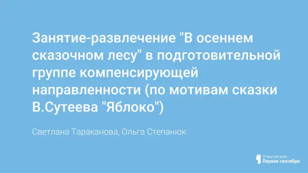 Занятие-развлечение "В осеннем сказочном лесу" в подготовительной группе компенсирующей направленности (по мотивам сказки В.Сутеева "Яблоко")