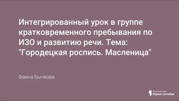 Интегрированный урок в группе кратковременного пребывания по ИЗО и развитию речи. Тема: "Городецкая роспись. Масленица"