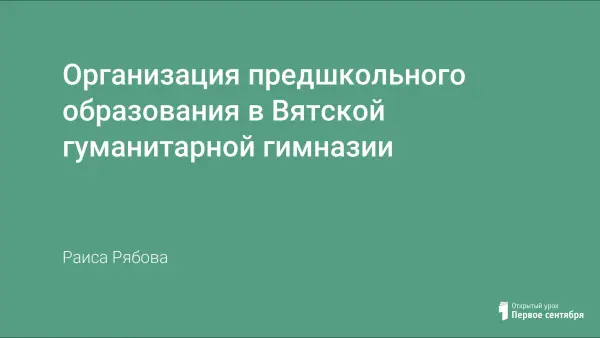В течение 19 лет в Вятской гуманитарной гимназии с углубленным изучением английского языка существует дошкольное отделение для детей от 5 до 7 лет с приоритетным осуществлением деятельности по обеспечению равных стартовых возможностей для обучения детей в общеобразовательных учреждениях. Организация предшкольного образования направлена на формирование интегральных качеств личности старшего дошкольника.