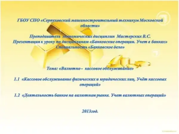 «Операции с драгоценными металлами и камнями». Из раздела преподавания дисциплины «Организация безналичных расчетов».