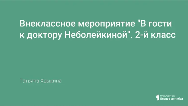 Мероприятие из курса занятий «Мое здоровье» повторяет и закрепляет правила здорового образа жизни. Занятие проходит в форме игры-путешествия по городу здоровья. Ребята вместе с доктором Неболейкиной побывают в доме воды, еды, физкультуры и чистоты. Используемые приемы (театрализация, инсценировка, игра, музыкальная заставка) усиливают эмоциональный эффект восприятия.