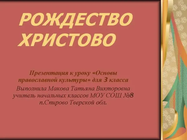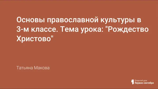 Урок наглядно показывает, что занятия по основам православной культуры устанавливают творческую атмосферу в классе, духовно совершенствуют учителя, учащихся и родителей, воспитывают у детей благоразумное стремление к добродетелям и желание преодолеть свои пороки. На уроке учащиеся знакомятся с историей и традициями праздника Рождества Христова.