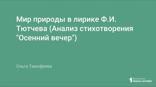 Анализ стихотворения должен открыть богатый, сложный мир поэзии Тютчева, его философскую глубину, неразрывную связь человека и природы, изображение осени не только как времени года, но и как периода человеческой жизни. Урок должен научить учащихся более внимательному отношению к слову, научить интерпретировать лирическое произведение.