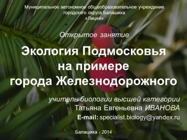 В статье разработан вариант открытого занятия по биологии для учащихся 9-го класса, посвященного экологической тематике родного края. Рассматривается экологическое состояние различных функциональных зон (селитебной, рекреационной и промышленной), атмосферного воздуха и водных объектов, затрагивается проблема отходов производства и потребления г.Железнодорожного как современного промышленного центра Подмосковья.