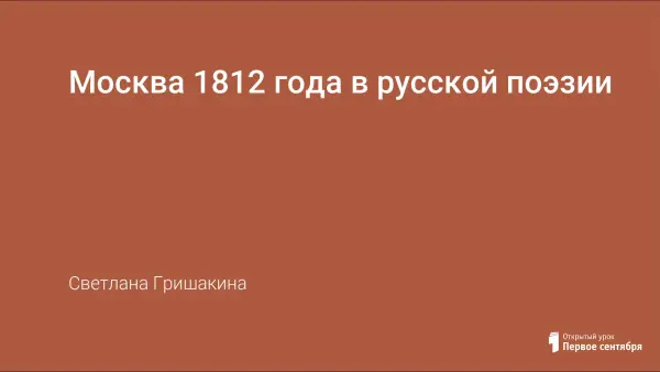 Цель урока: проследить роль лирики в формировании высокого патриотического чувства в период Отечественной войны 1812 года; познакомить учащихся с образцами русской поэзии периода Отечественной войны 1812 года; сформировать представление о тематическом единстве лирики у поэтов пушкинской поры; воспитывает чувство уважения и гордости за страну и ее историю.