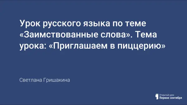 Данный урок в занимательной форме предлагает учащимся познакомиться с заимствованной лексикой русского языка. Ученики не только расширят свой лексикон, узнают занимательные факты о культуре и традиции других народов, но и проявят творчество и фантазию при составлении своего рецепта пиццы. Появится и возможность привлечь родителей, домашних к составлению фирменного рецепта этого кушанья.