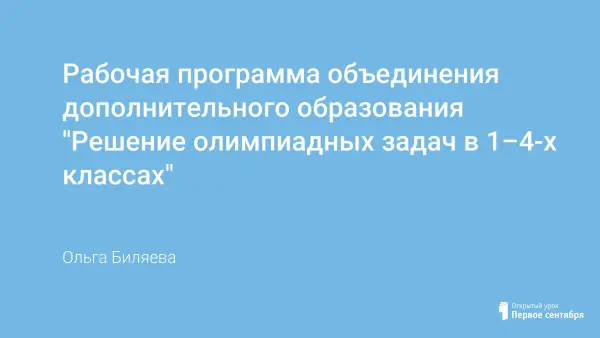 Рабочая программа объединения дополнительного образования "Решение олимпиадных задач в 1–4-х классах"
