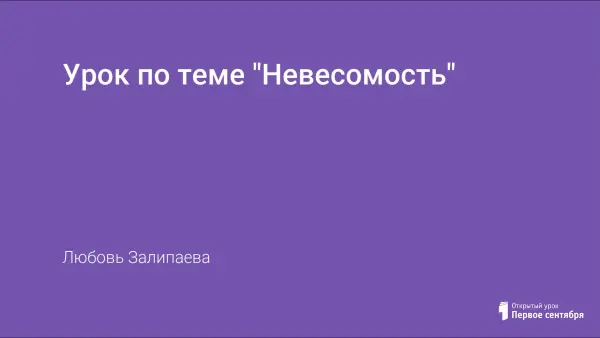 Урок посвящен обобщению материала о состоянии невесомости. При его проведении используются фрагменты популярного учебного фильма, созданного учениками в рамках проектной деятельности учащихся.