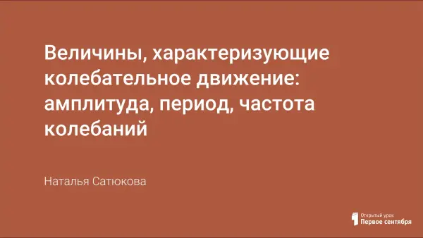 В статье представлен урок для учащихся 9-го класса. Цели урока: познакомить учащихся с величинами, характеризующими колебательное движение: амплитуда, частота, период и фаза колебаний; показать значимость данной темы и связь ее с другими науками; развивать умения работы с дополнительной литературой, учебником; воспитывать самостоятельность, прививать культуру умственного труда и интерес к предмету.