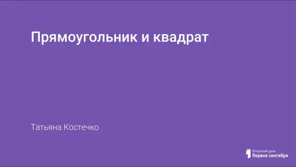 Цели урока: уточнить понятия "прямоугольника" и "квадрата", выявить существенные признаки прямоугольника и квадрата, формировать способность к их распознанию на основе существенных свойств, изображению и вычислению их периметра, познакомить с термином "геометрия"; развивать устные вычислительные навыки, логическое мышление; обогащать кругозор учащихся, прививать интерес к предмету, воспитывать чувство дружбы и взаимопомощи.