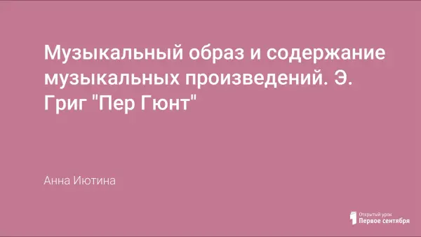 Цель урока – углубление представлений о программной музыке, музыкальном образе и содержании музыкальных произведений. Учащиеся знакомятся с творчеством Э. Грига, учатся давать оценку чувствам, образам музыки.